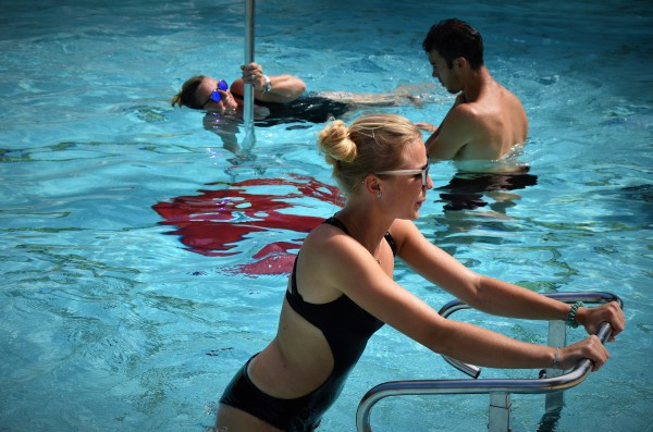 Une séance d'aquabike et d'aquafitness avec Mathieu c'est du fun assuré, un bon moment de sport aquatique avecd es exercices variés.